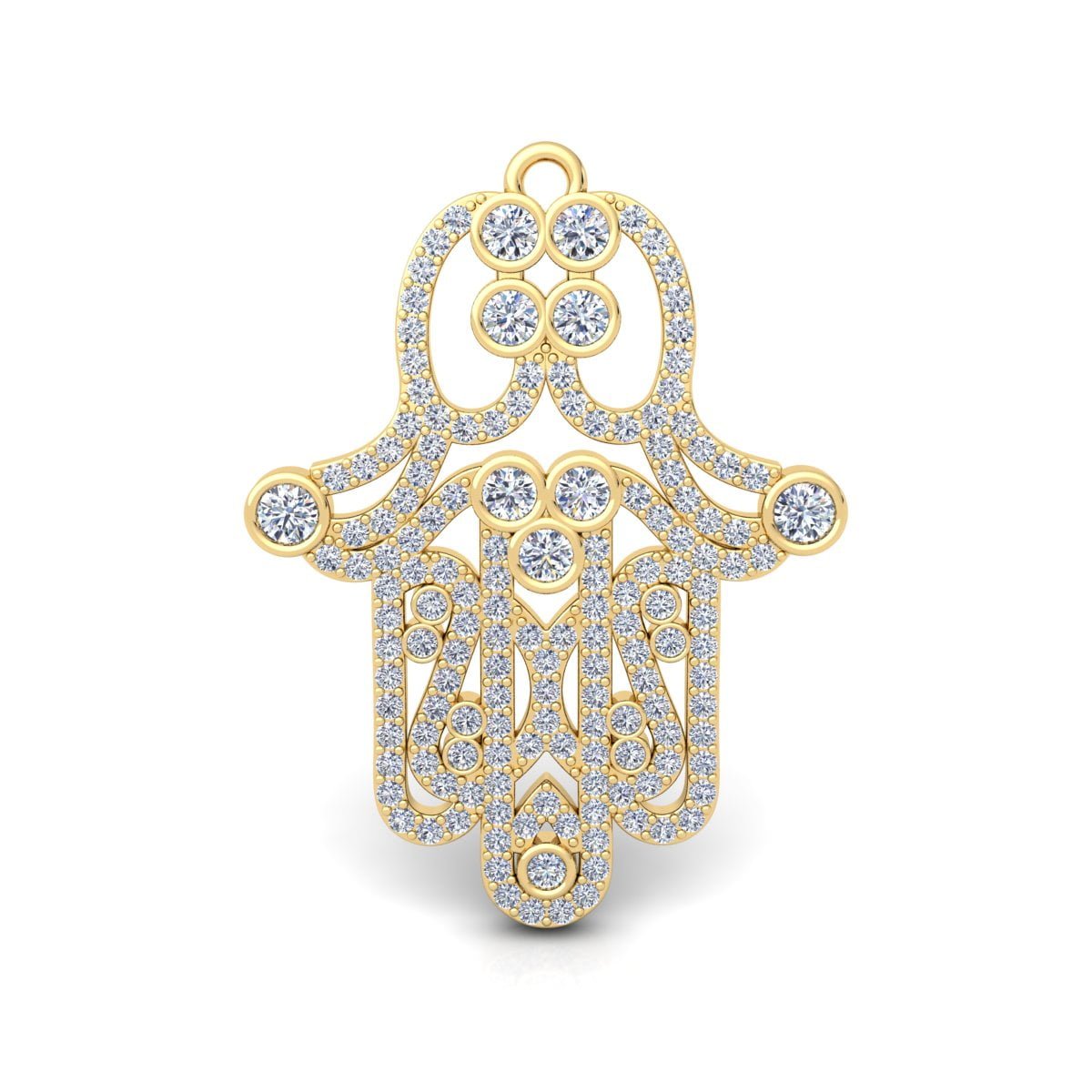 This beautiful Hamsa Pendant that is believed to protect us from the evil eye is made of 925 Silver and shimmering VVS Moissanite, ensuring it makes you shine from every angle. This diamond pendant is 1.40Inches long, 1.10 Inches wide, weighs 8 grams approximately. This pendant sparkles with 1.90 CTW of DEF Color Moissanite and is polished to high shine. Pass Diamond Tester