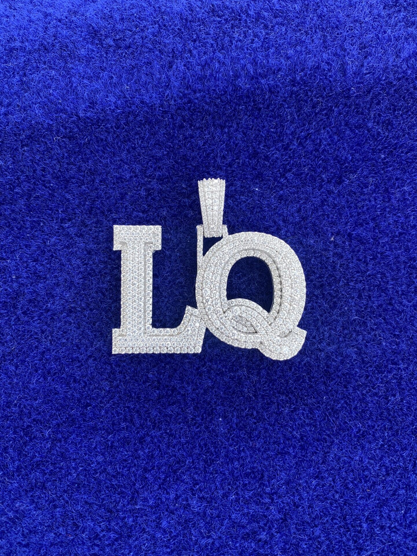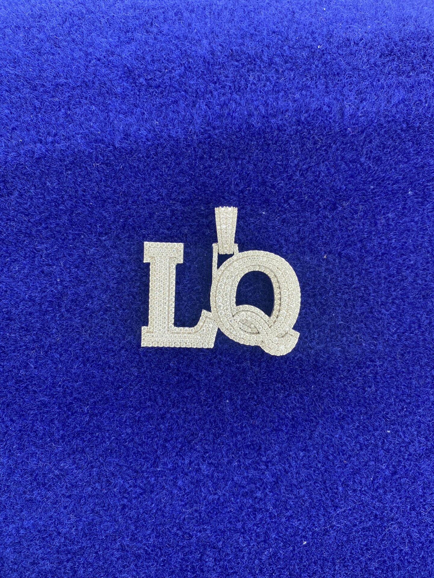 This custom made LQ pendant is carefully handcrafted in 925 silver. It tests positive on regular diamond tester. Custom pendants can be made using any letters. Iceout with round-cut DEF color VVS Moissanite diamonds. Stunning Moissanite Custom Letter Pendant, where personalized elegance meets timeless sparkle. Pass Diamond Tester